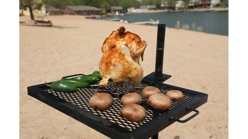 The GameMaker, Gravity Grill is over 3 feet tall and can be placed in ground using hammer if needed and comes apart in seconds for easy storage and portability. Making it ideal for all your cooking needs: camping, boating, RVs, parks, beaches or even your backyard. Where ever you can pound it in!
