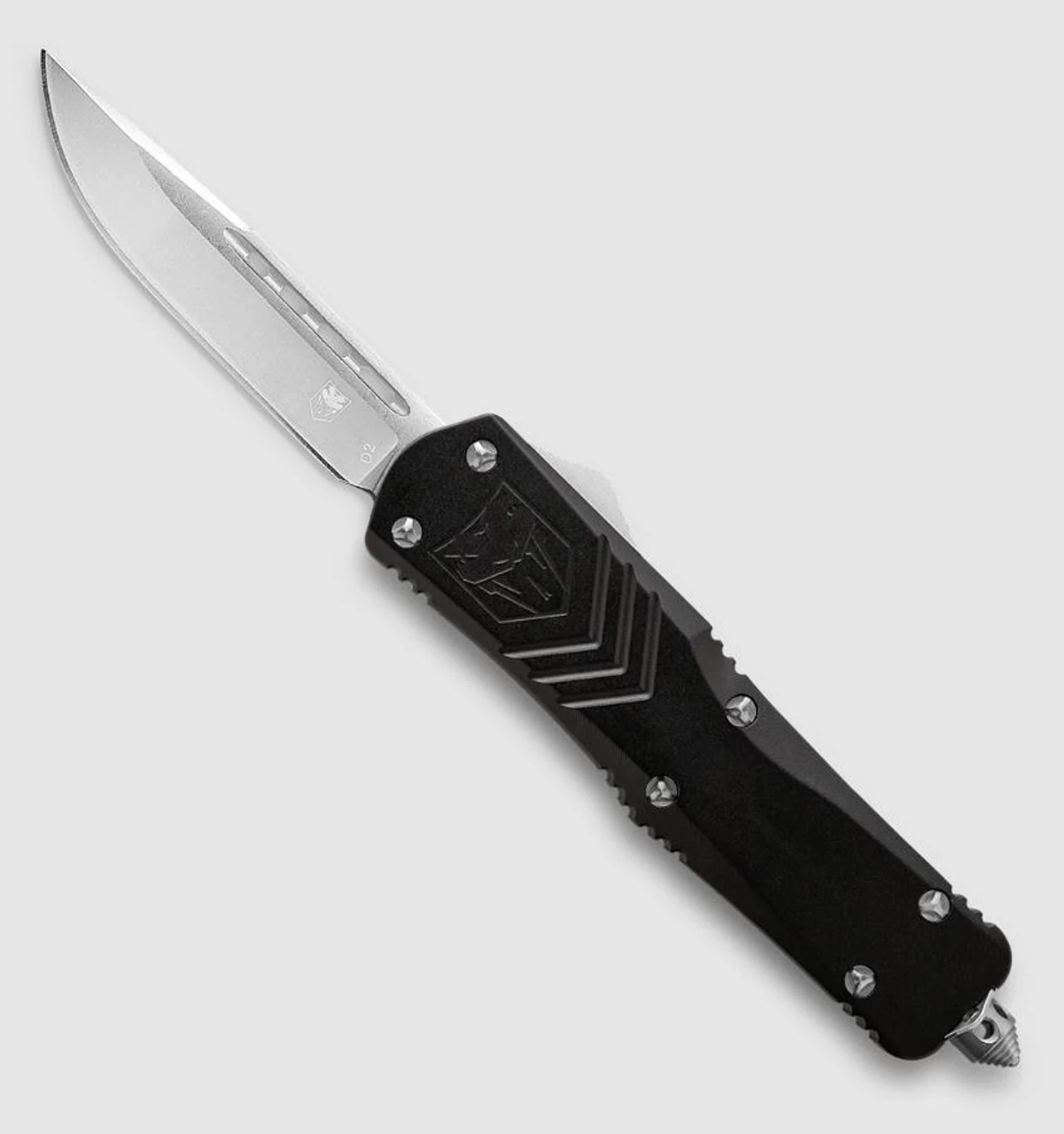 This CNC Machined OTF knife is very sleek and fits nicely in your pocket. The handle is expertly engineered from 6061 T6 Aviation Aluminum and features a high quality D2 Steel blade.
