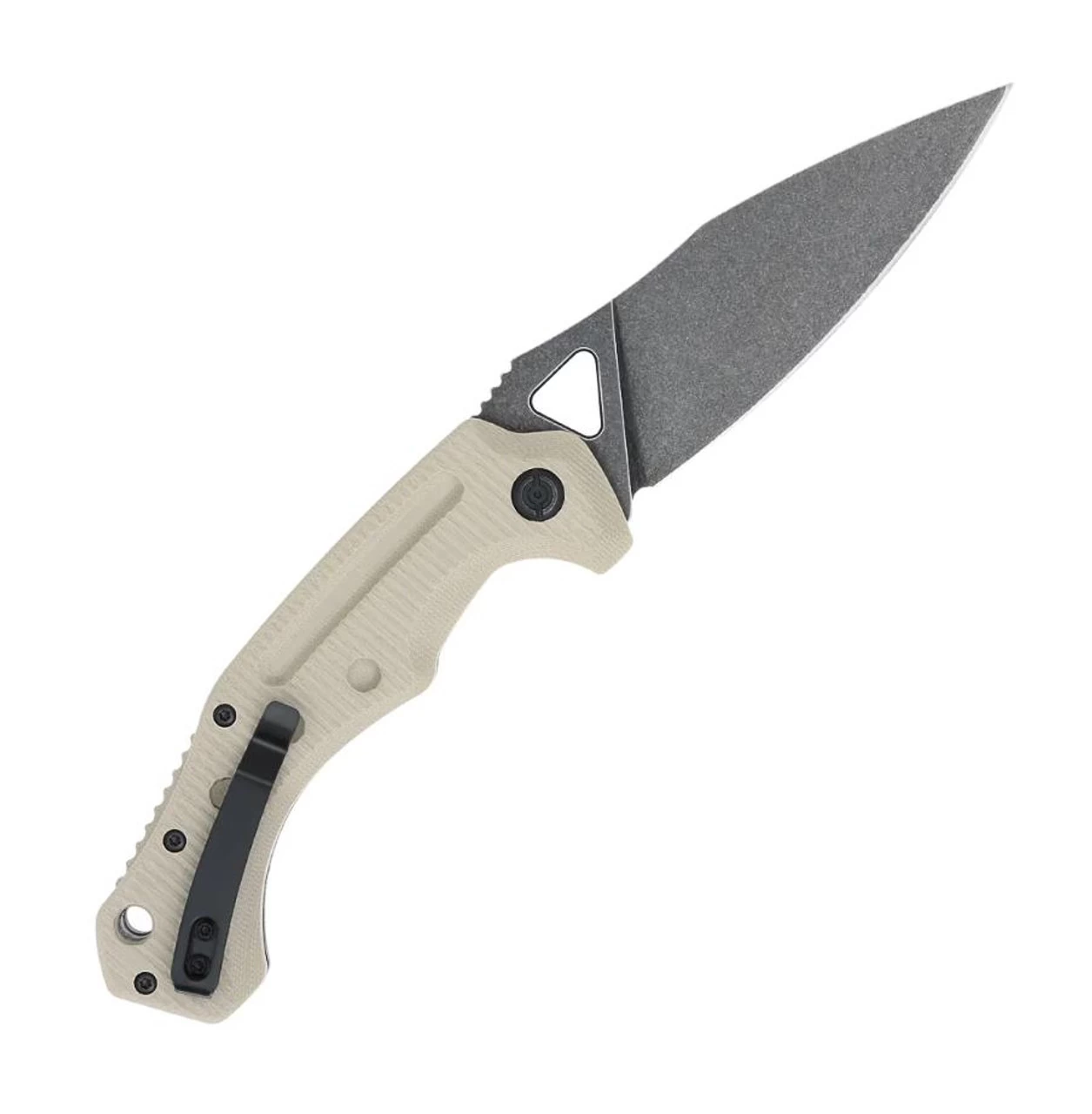 The Ryker is a side button folding automatic. It comes equipped with G-10 scales, a black stonewash D2 steel blade, RH pocket clip and a sliding safety switch to prevent accidental discharge.
