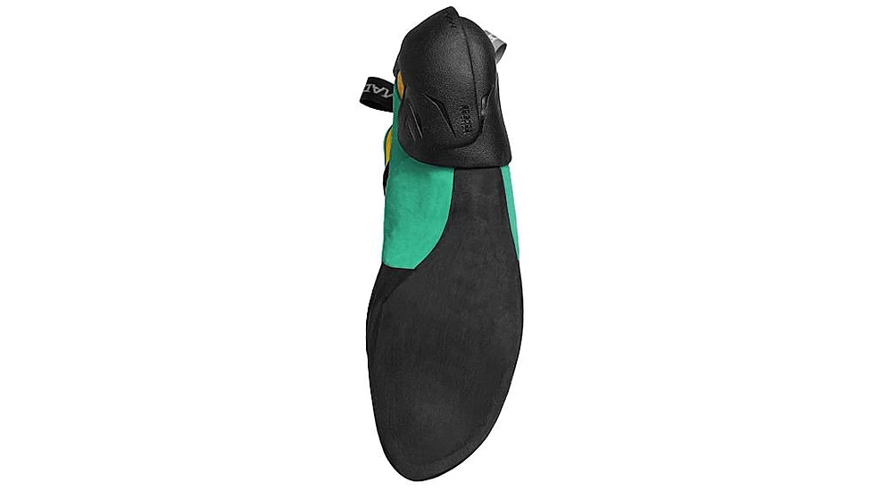 3D expandable molded heel for a versatile fit made with climbing grade rubber
