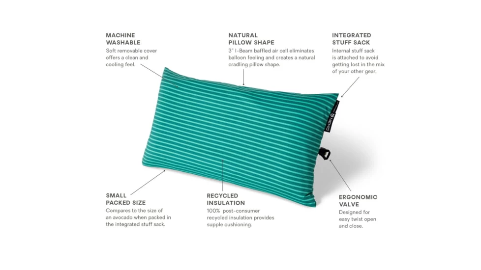 We decided to bring clever design and luxurious attention to an often-overlooked piece of gear: the humble backpacking pillow, which is essential to a comfortable nights sleep. We designed the Fillo Elite with a layer of 100% Post-Consumer Recycled Primaloft insulation, combined with a 3in I-beam baffled air cell and an ultra-soft jersey cover. The result is a pillow that cradles your head nicely, yet packs down as small as a Kefir lime.