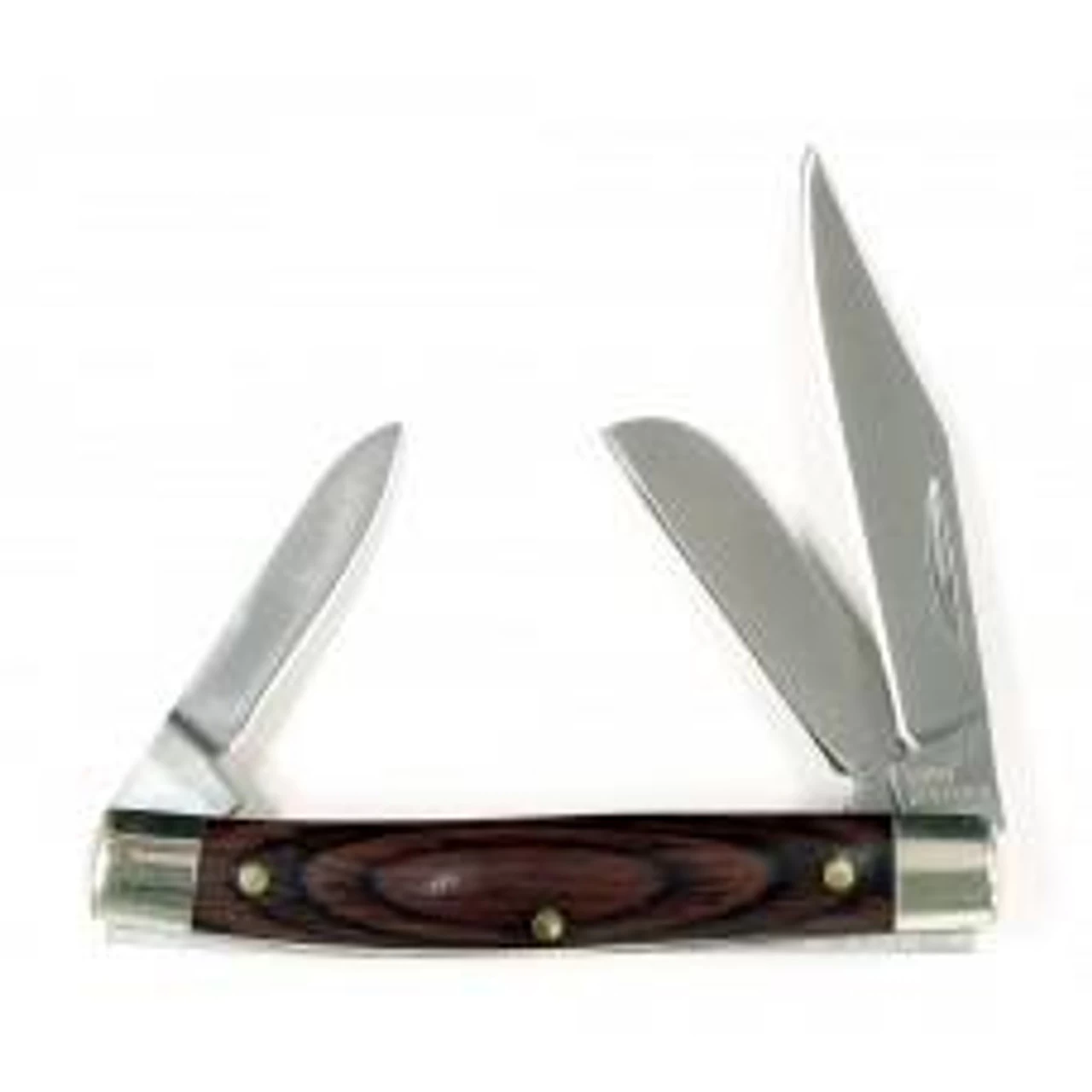 Handcrafted 3-blade Stockman Pocket Knife with Pakkawood scales. Razor Sharp 440A Stainless Steel blades, Brass liners and pins, Nickel Silver Bolsters. Closed Length: 2-3/4″